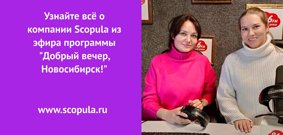 Директор и учредитель компании Scopula Евгения Плетнева недавно побывала в гостях радиостанции "Серебряный дождь" в программе "Добрый вечер, Новосибирск!".