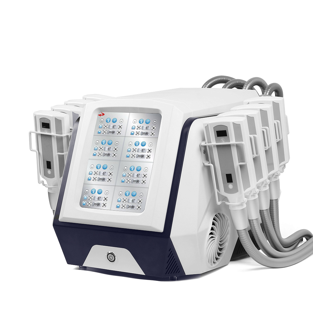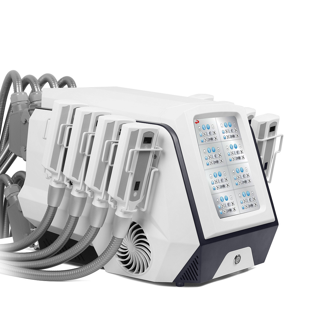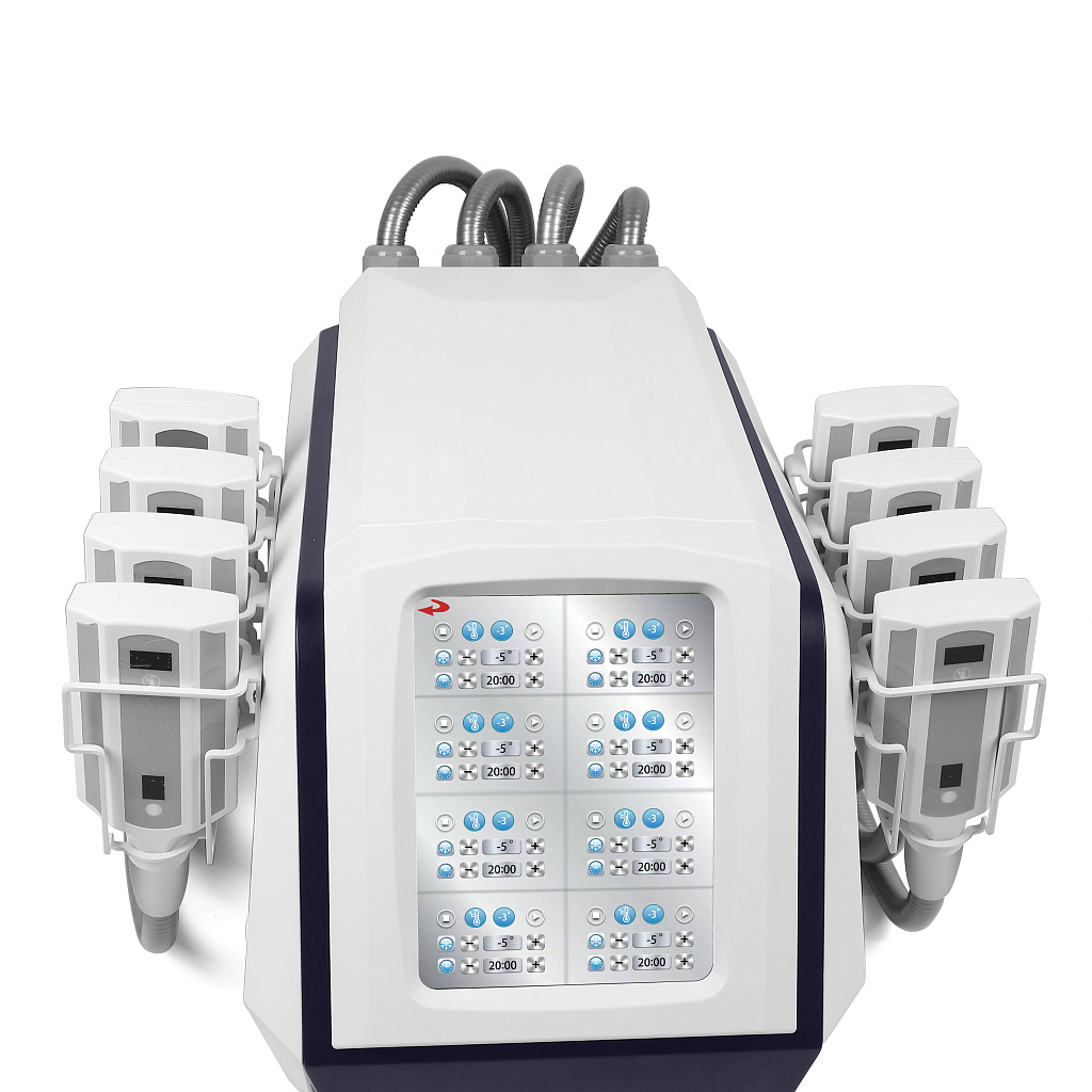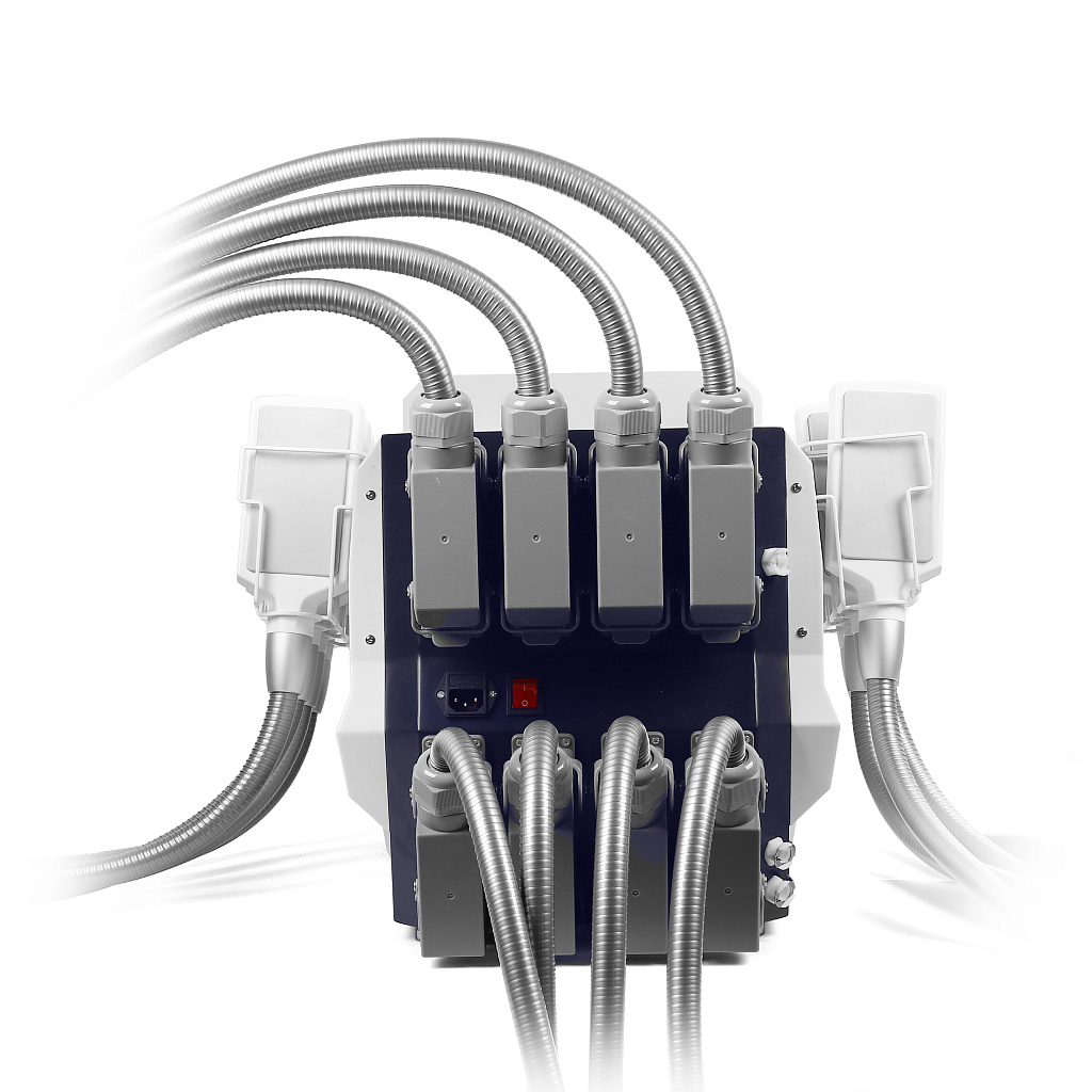 Аппарат для криолиполиза SA-B51 оснащен 8 криоподушками, которые можно использовать по отдельности или в комплексе. При контакте аппликатора с телом запускается процедура охлаждения и неинвазивного разрушения локальных скоплений жировой ткани. Время обработки по умолчанию составляет 60 минут, но продолжительность можно изменять на панели управления.